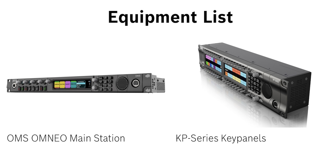 Per questa applicazione, un OMS completamente attrezzato in configurazione avanzata interconnesso con keypanel digitali RTS, un sistema di intercomunicazione wireless ROAMEO e beltpack digitali per garantire una qualità audio impeccabile.